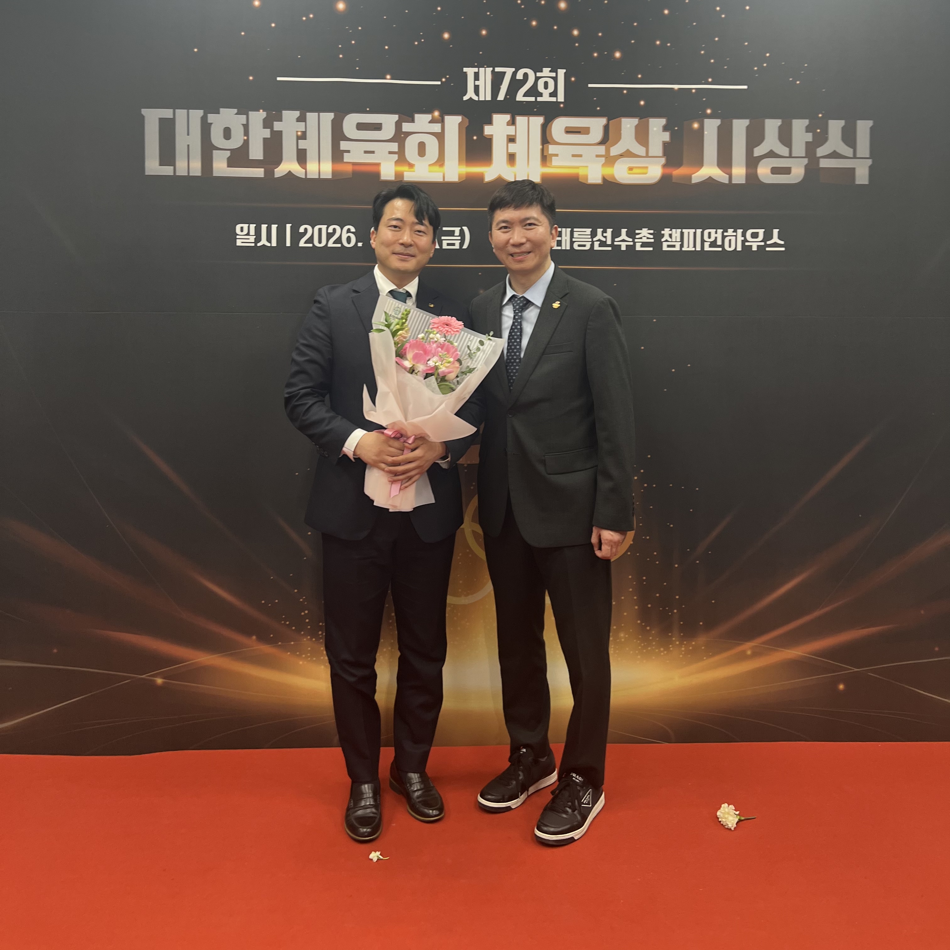 스포츠의학과 최동훈 교수님 우수상 수상 안녕하세요 건양대학교 스포츠의학과 학생회입니다 건양대학교 스포츠의학과 최동훈 교수님께서 제3차 체육시설 안전관리 기본계획(2026~2030) 연구 참여와 2018 평창동계올림픽 및 패럴림픽 안전교육 진행 등 스포츠 안전관리 역량 강화를 위한 다양한 활동을 통해, 지난 3월 13일 서울 태릉선수촌 챔피언하우스에서 열린 제72회 대한체육회 체육상 시상식에서 스포츠가치 부문 우수상을 수상하셨습니다 대한체육회 체육상은 대한민국 체육 발전과 진흥에 기여한 체육인을 선정해 수여하는 국내 체육계 최고 권위의 상입니다. 이처럼 스포츠안전 분야 연구와 정책 개발, 교육 및 다양한 현장 활동을 통해 스포츠 안전문화 확산과 국가 스포츠안전 체계 구축에 기여한 공로를 인정받아 이번 상을 수상하셨습니다. 다시 한 번 스포츠의학과의 자랑스러운 최동훈 교수님의 수상을 진심으로 축하드립니다! |
